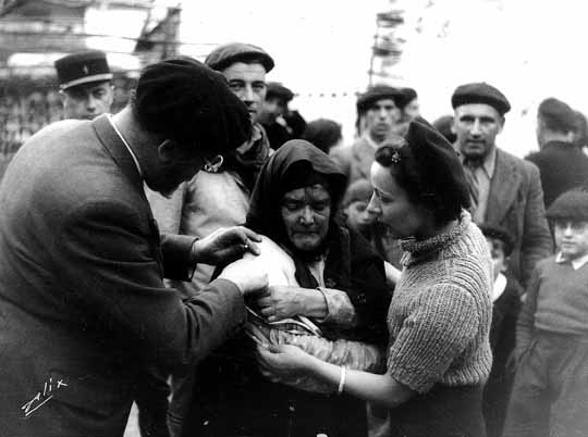 Información facilitada por el Sr. Verdier de Saint-Lary: En primer plano el Dr. De Carrère de Tarbes. Detrás del doctor, un gendarme y con boina Joseph Cascarra (de Saint-Lary), con la mano en la cabeza Louis Burgalat (de Saint-Lary), detrás de la enfermera Louis Rey y André Lafitte (de Arreau) y a la derecha André Lafitte, sobrino del anterior.