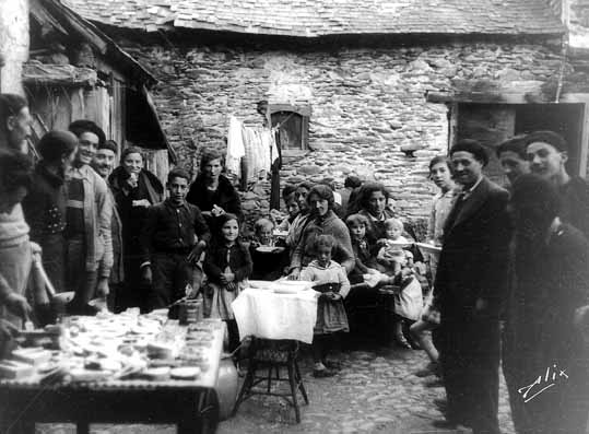 | Contenido: En el reverso de una de las copias: "San Lary. Casa de DUCUINE (Rte. de Vielle Aure) / Antoine Bielsa avec les fréres Cazcarra et des réfugies auxquel on a offert un goûter". |