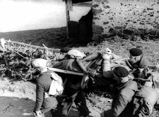| Contenido: En el reverso de una de las copias: " Transporte de herido / Aragnouet / Bolsa de Bielsa, 1938". |