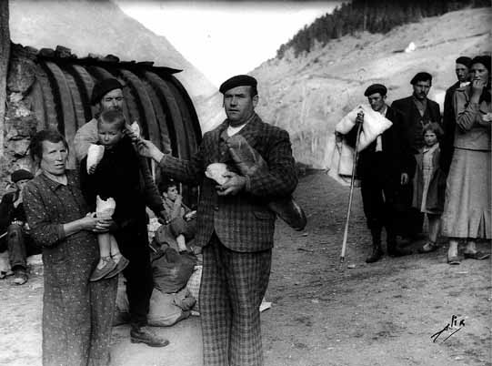 Contenido: Anotado en el reverso de una de las copias: "Village d'Aragnouet / Bolsa de Bielsa, 1938 / el señor con el pan es M. Mur, José".
