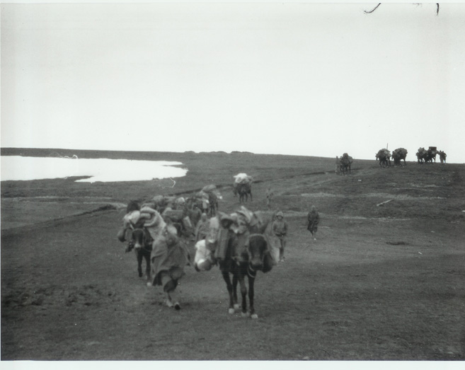 | Contenido: Batallón de Sobregrau, con mulos y ametralladoras pesadas, en el llano de Santa Orosia de Yebra de Basa. Están recién llegados a este lugar, donde permanecerán hasta el día 3 de abril, en que el abandono por parte de los republicanos de las posiciones circundantes les permitirá avanzar hacia Sobrarbe. |