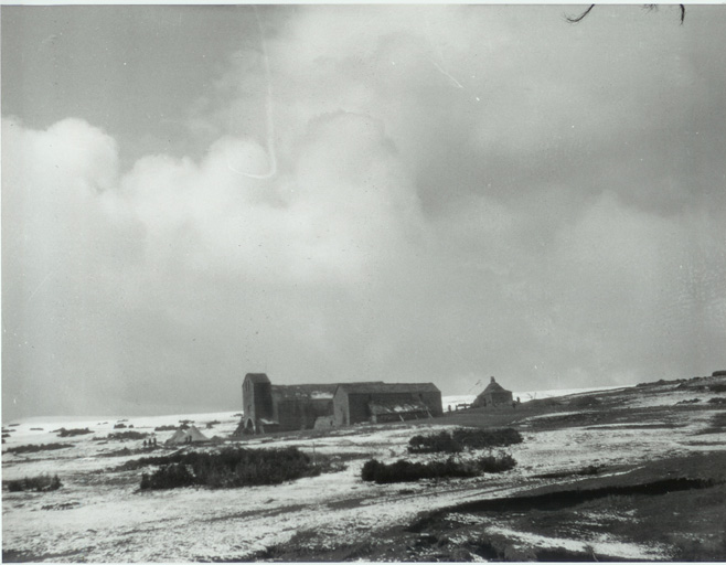 | Contenido: Vista general de la ermita de Santa Orosia de Yebra de Basa y su entorno. Ante la ermita se ven tiendas de campaña. Tras abandonar las posiciones de la zona de Javierre y pasar un breve tiempo en Sabiñánigo, el batallón de Sobregrau asciende el puerto de Yebra a partir del 21 de marzo y permanecen allí hasta el 3 de abril, en que el abandono de las posiciones circundantes por parte de los republicanos le permite avanzar hacia Sobrarbe. |