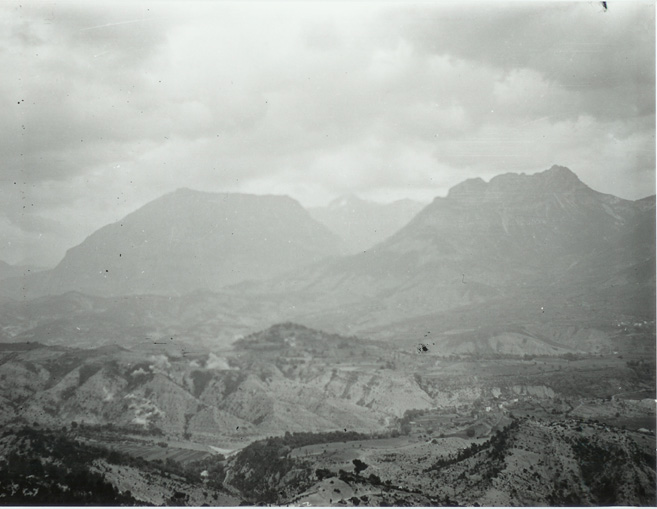 | Contenido: Datos tomados del diario de Ramiro de Sobregrau. la fotografía parece corresponderse con la siguiente anotación del diario de Sobregrau, fechada el 17 de abril: "Durante la noche el enemigo ha fortificado brutalmente abriendo trincheras por todas partes. La artillería bombardea bastante intensamente dichas posiciones[...]". O con esta otra fechada el 21 de abril: "Se espera la aviación. La artillería desde la mañana bate fortísimamente el campo enemigo [...] Ya cerca de mediodía vienen 5 aviones de reconocimiento. La artillería redobla los cañonazos para señalar los objetivos a la aviación [...]". |