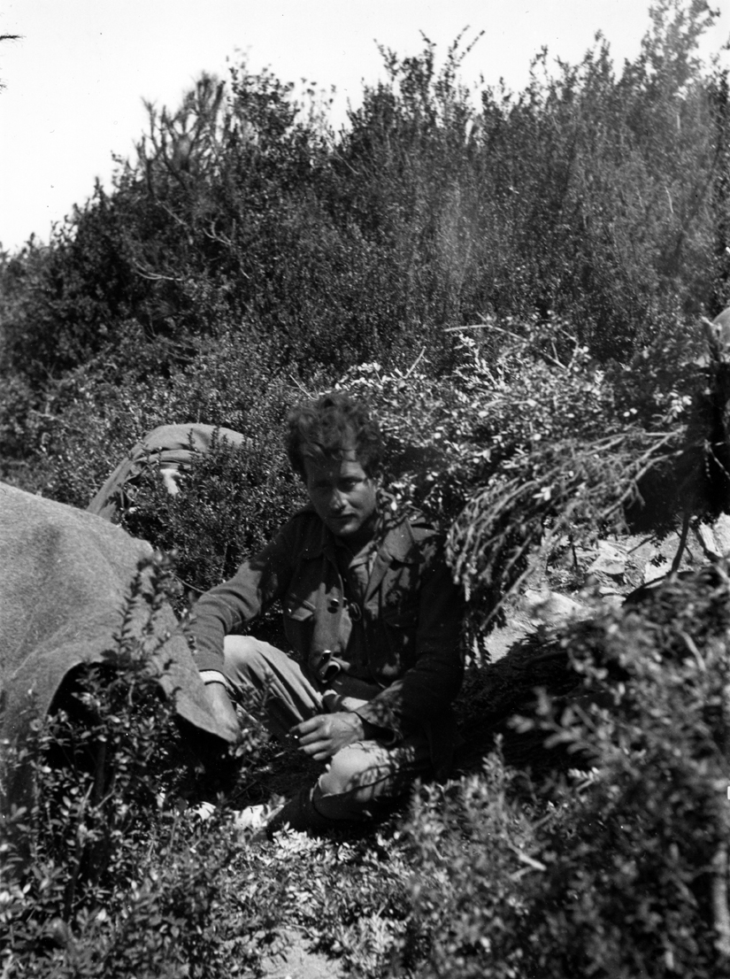 | Contenido: Fotografía de Ramiro de Sobregrau entre unos arbustos. |