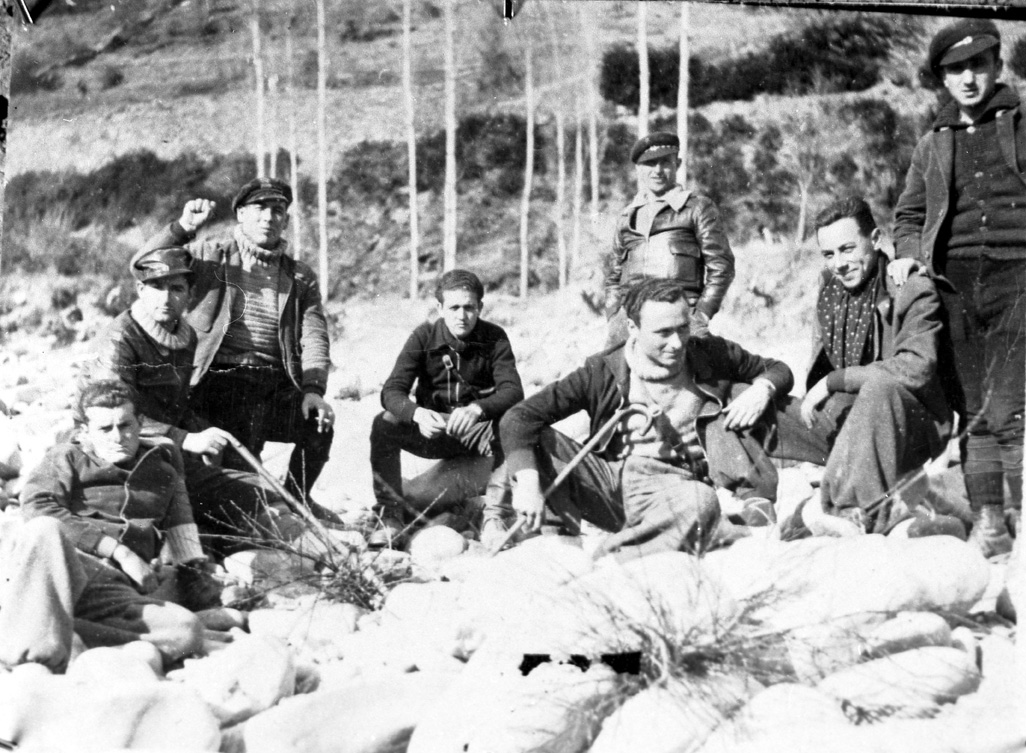 | Contenido: Fueron integrados en la 72 Brigada Mixta. De pie, el primero por la derecha, José Sampietro; el segundo, el sargento Ignacio Gascón, natural de Torres de Berellén (Zaragoza), donde fue concejal por el Frente Popular en febrero de 1936 y dirigente sindical agrario de la CNT. |