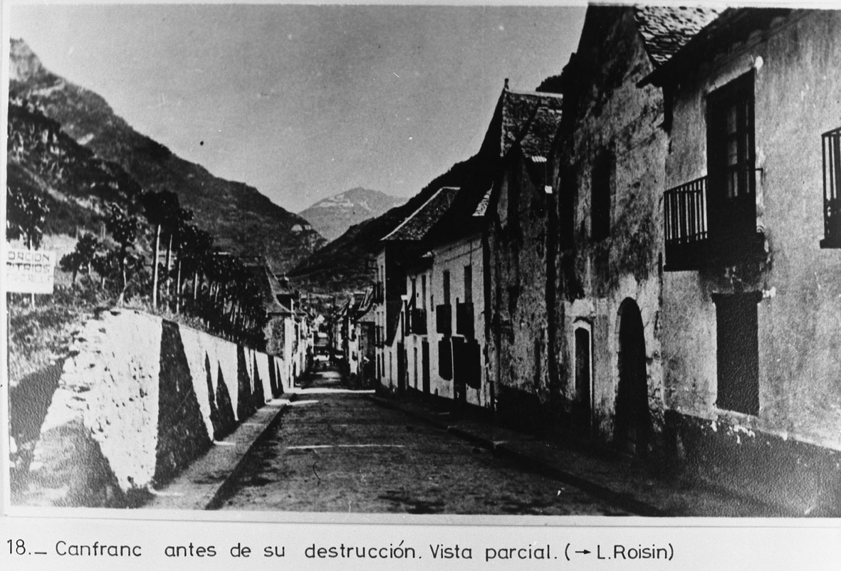 | Nota: Al pie de la foto el texto que da título a la foto, "Canfranc antes de su destrucción. Vista parcial", y el nombre L. Roisin, autor de la fotografía y editor de la postal. |