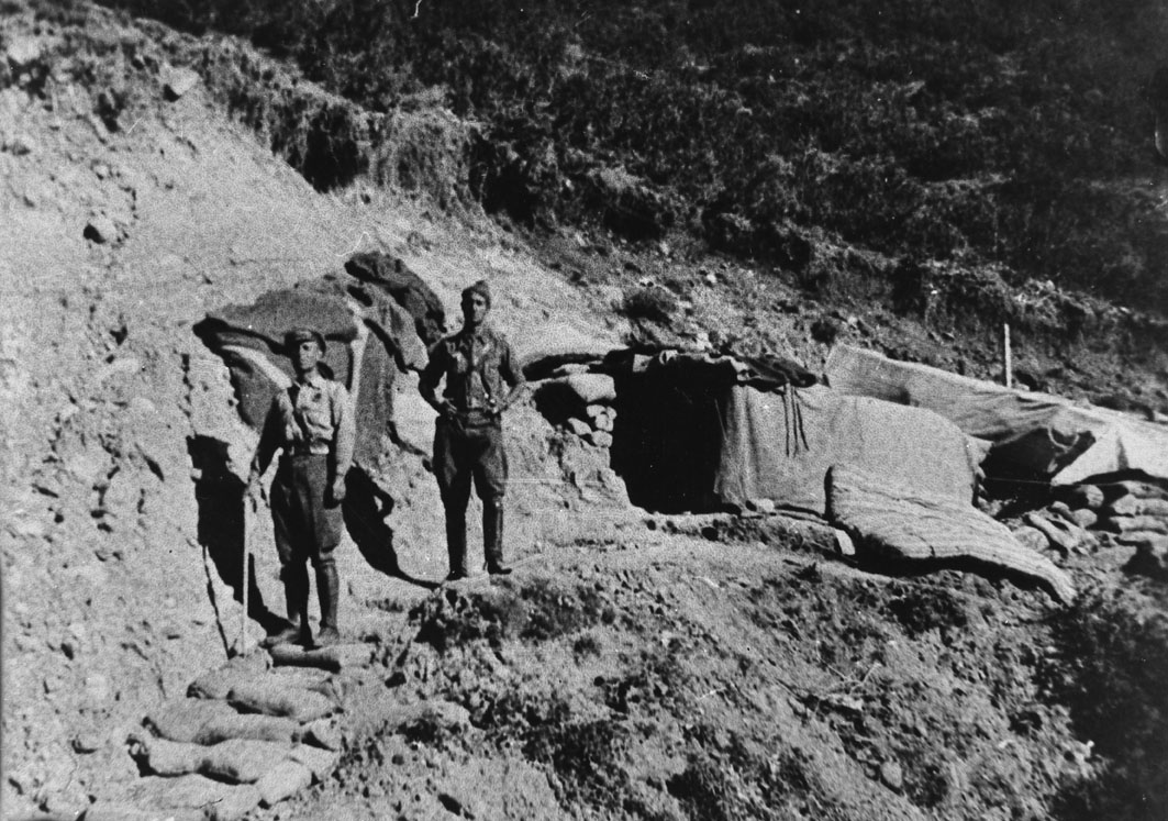Nota: En copia de 13 x 18, al dorso: "Septiembre, 1937 / Ramón Castejón, del BON de la FETE, junto al túnel de Cotefablo (lado de Biescas) / Foto Roetgen Beltrán".