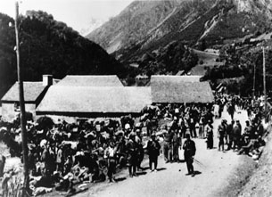 | Contenido: La evacuación de la población civil en el valle de Bielsa y la retirada del la 43 División se da por finalizada el 15 de junio de 1938. El 16 de junio son concentrado por las autoridades francesas en Arreau para establecer por medio de un referéndum hacia donde desean repratiarse los combatientes recién salidos de Bielsa. Este día, el 16 de junio, tiene lugar el llamado Plebiscito de Arreau. De la misma manera se había procedido con la División 31 en marzo del mismo año en Toulouse. El resultado de Arreau fue que unas 400 personas, la mayor parte población civil, mujeres y niños, decidieron regresar a la España de Franco, y el grueso de la 43 División, 6.689 milicianos, se reintegraron en la España republicana. Se organizan los convoyes necesarios para que los primeros entraran por Irún y los segundos por Portbou hacia Gerona y Barcelona, poblaciones donde fueron recibidos con homenajes. |