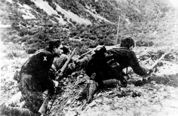 Nota: En copia de 8 x 13 cm, al dorso: "Grupo de guerrilleros de la 43 División / El primero de la izquierda es Mariano Constante / CEHC / 1938".