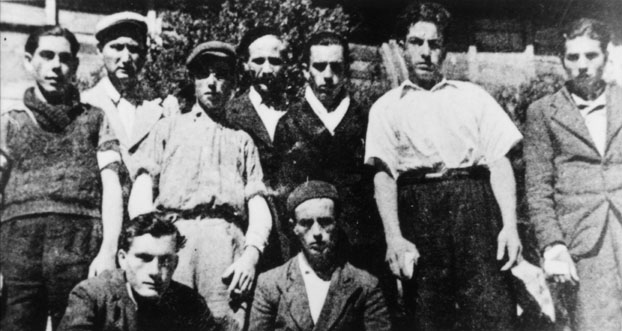 Contenido: Se trata de un recorte de un publicación con pie de foto incluido en el que dice: "Españoles residentes en el extranjero que se presentaron voluntarios para combatir al lado de las fuerzas del valle de Bielsa".