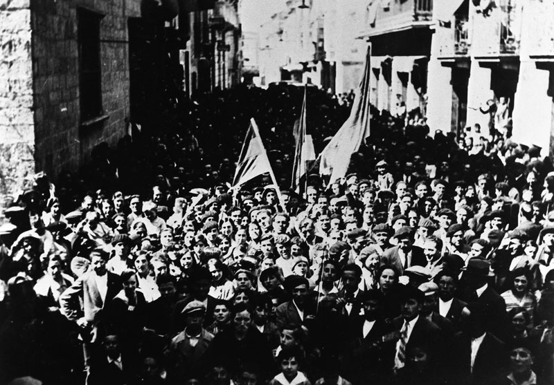| Contenido: Jacetanos en la calle mayor celebrando la proclamación de la República el día 15 de abril de 1931. |