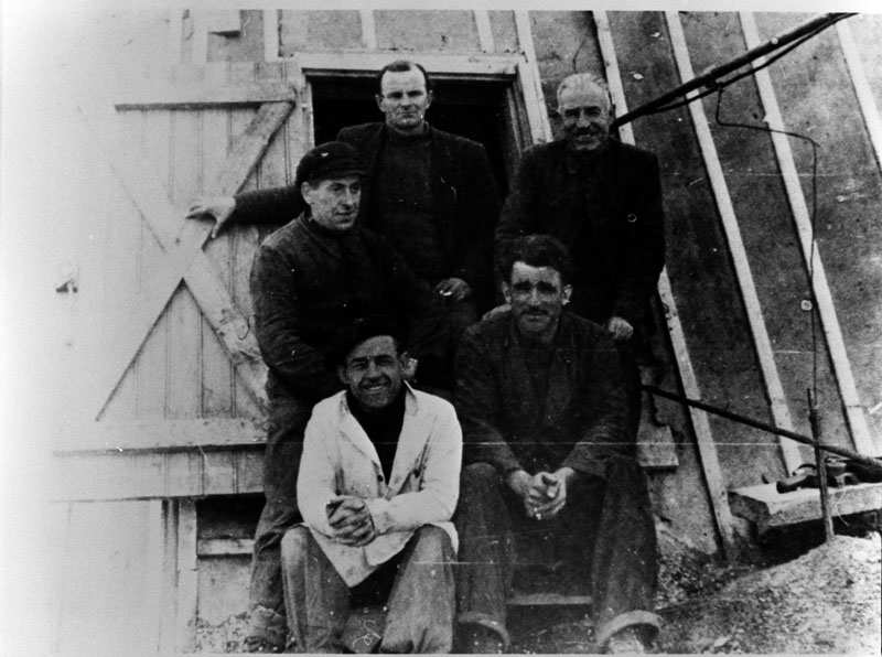 | Contenido: Beltrán, en la última fila, a la derecha, como trabajador en el tren de Artouste. |