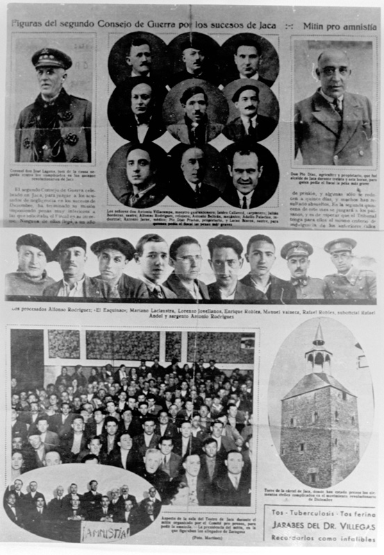 Contenido: Página de periódico sin identificar en el que aparecen fotografías de los principales civiles encausados por los sucesos de Jaca el 12 de diciembre de 1930.