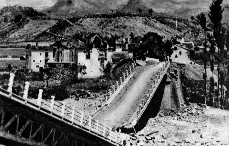 | Contenido: Efectos de la voladura del puente sobre el río Bellós, próximo a su confluencia con el Cinca. |