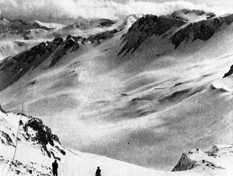 | Contenido: Sección de Esquiadores del Batallón Mixto de Montaña del ejército franquista durante un patrulla por el Pirineo oscense. |