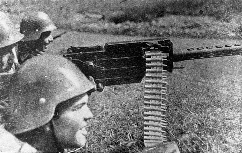 | Título: Posición militar. Soldados con ametralladora |