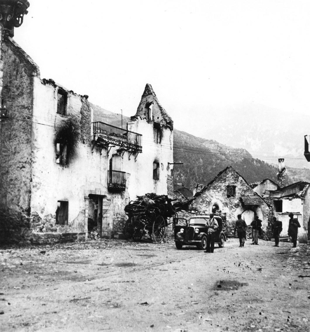 | Título: Plaza de Bielsa tras la retirada del Ejército Republicano |