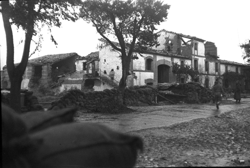 | Título: Trinchera y casas destruidas por un bombardeo |