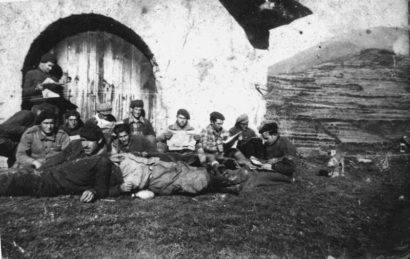 | Contenido: Soldados de la 43 División al carasol de una de las bordas de las eras de Fanlo. |