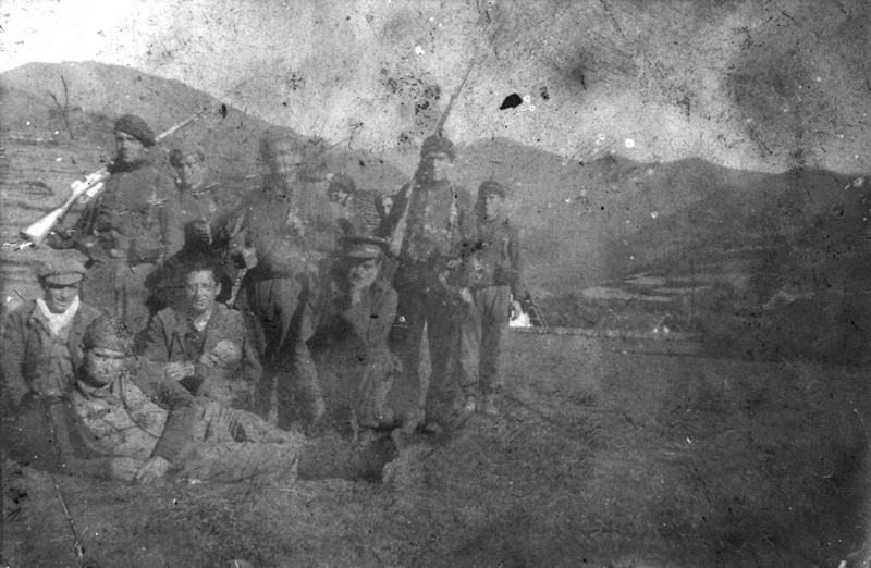 | Contenido: Grupo de combatientes enlas eras al noroeste de Fanlo. |