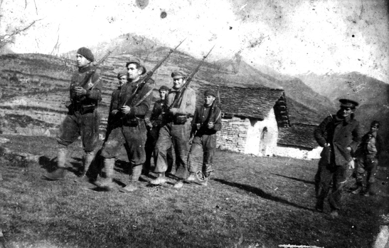 | Contenido: Combatientes de la 43 División realizando instrucción en las eras de Fanlo. |