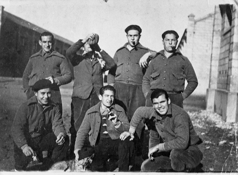 | Contenido: Entre los que están de pie, el primero por la derecha es Bienvenido Loste, seguido del sargento Bienvenido Pallaruelo, de Saravillo y primo hermano de Julián Borderas. |