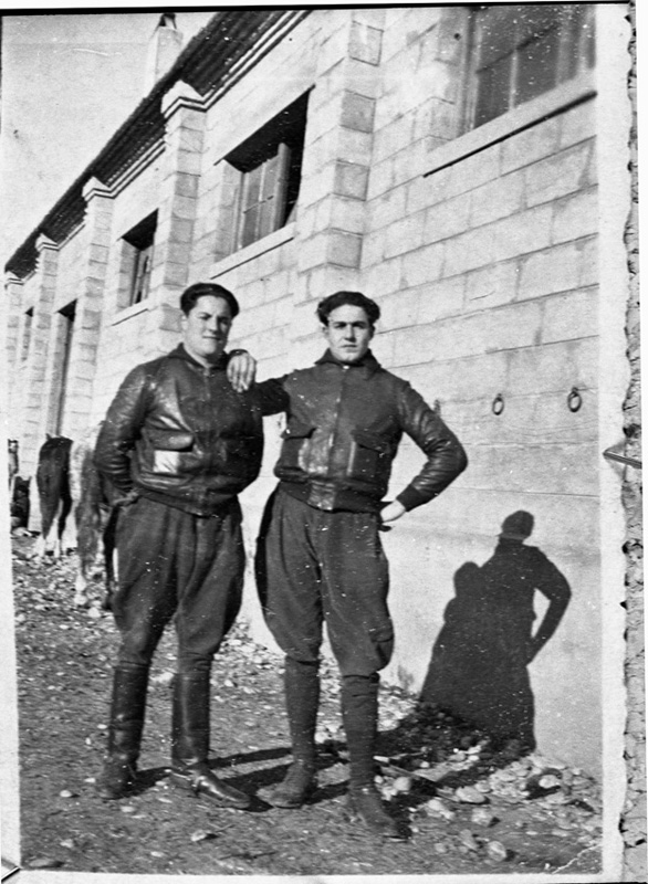 | Contenido: Bienvenido Loste, a la izquierda, con Bienvenido Pallaruelo, de Saravillo, en Barbastro, después de volver del frente de Tardienta. Ambos son sargentos. |
