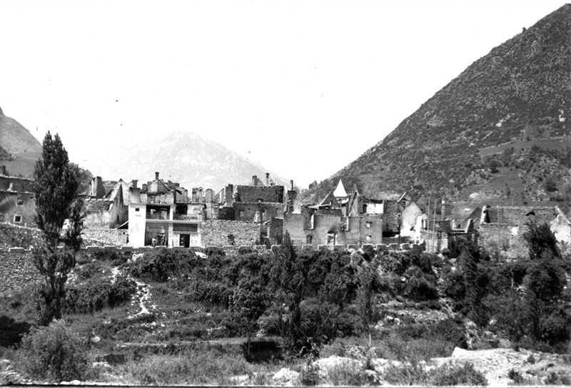 | Título: Vista parcial de Bielsa destruida |