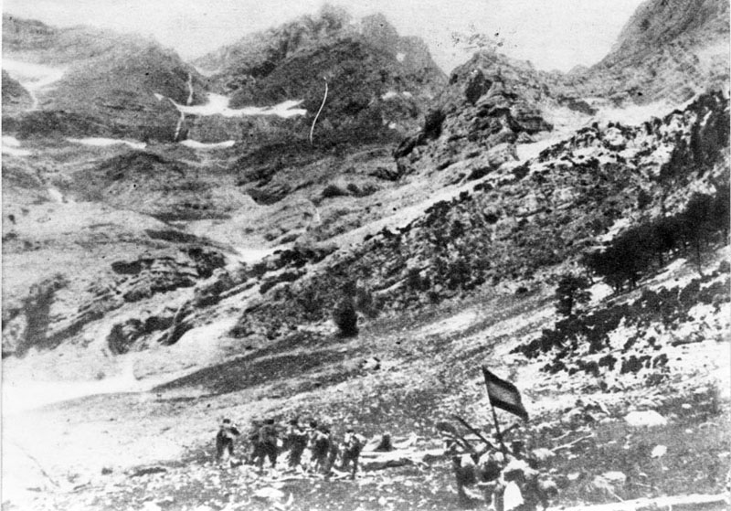Contenido: En nota manuscrita en el reverso de la fotografía: "Tropas nacionales en la frontera".