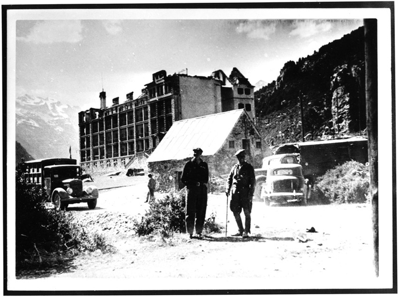 | Contenido: Se aprecia el estado del sanatorio de Pineta a la llegada de las tropas franquistas, tras haber sido incendiado el 14 de junio por el grupo de destrucciones de la 43 División. |