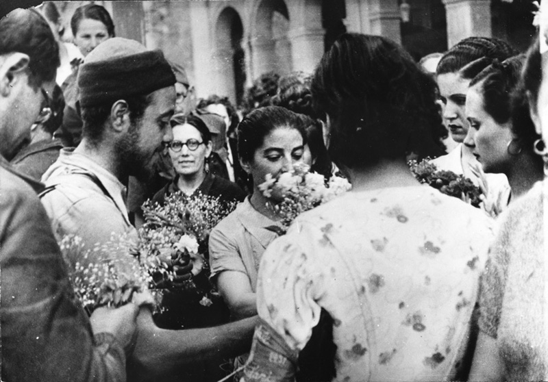 Nota: Signatura en reverso: C-91 / S-3. Por el tipo de signaturas, todas las fotografías relacionadas con el recibimiento en Gerona a la 43 División parecen proceder del mismo archivo, así como todas las referenciadas a continuación.