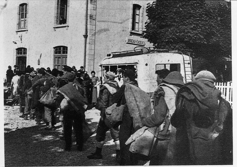 | Contenido: Fotografía publicada en el periódico francés L'Illustration el 2 de julio de 1938, en artículo titulado "Un episodio de la guerra de España. La evacuación de la 43 División". El pie de foto completo dice, traducido: "Embarque de milicianos en la estación de Arreau".