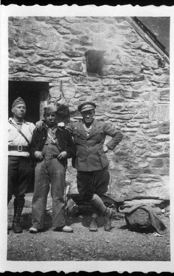 Contenido: Grupo de tres soldados u oficinales de la 43 DV en un momento sin determinar en el valle de la Gèla en Francia después de pasar el Puerto Viejo. Esta imagen está también en la sección Guerra Civil, fotografía con el nº ES-ARA-MB-003-017-000-020. Dos de los militares aparecen en la imagen nº ES-ARA-MB-003-017-000-019 y el primero de la derecha en la anterior ES-ARA-MB-003-020-000-023. |