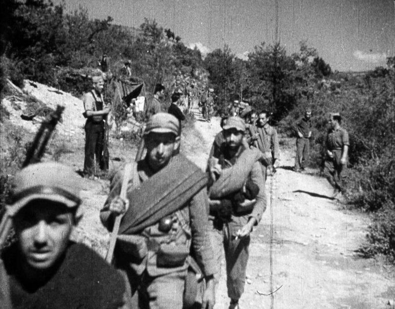 | Contenido: Noticia sobre la actividad militar del ejército popular en el Alto Aragón. Desde Boltaña las tropas avanzan hacia Sabiñánigo, y recuperan el dominio de la sierra y sus aldeas. En el documental se distingue claramente un fotograma de Boltaña mientras un soldado arregla un poste de comunicaciones. Después continúa con imágenes del avance de las tropas a pie con apoyo de caballerías y algún transporte por senderos de montaña. La noticia informa también sobre la actividad de las brigadas de transmisiones y señales que equipan y reparan las líneas del tendido de comunicaciones. Música de fondo que acompaña al narrador en catalán. |