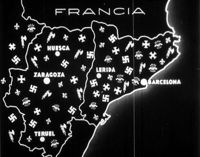 | Contenido: Mapa de posiciones del Frente de Aragón. No conservamos en el Museo de Bielsa el documental al que pertenece esta imagen. |