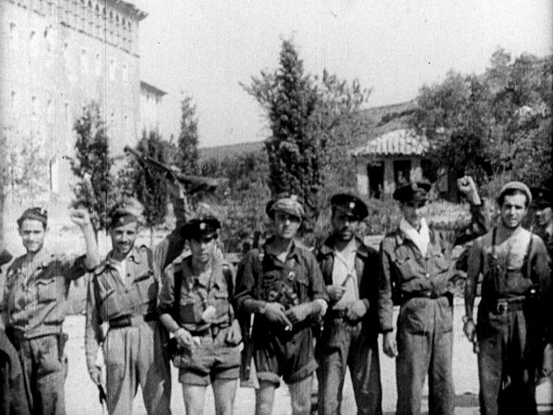 | Contenido: Imagen del documental Tres Fechas Gloriosas que narra el avance del ejército republicano en el frente de Aragón en el año 1937. Enlaza las victorias de las Milicias antifascistas en Aragón en 1936 y principios de 1937 con las posteriores alcanzadas por el Ejército Popular Regular. Combates en Pina, Quinto y Belchite. El 15 de octubre de 1937 las tropas republicanas conquistan Biescas y 50 poblaciones del Alto Aragón entre ellas Gavín y Allué. Después continúa con la conquista de Teruel y el avance hacia Zaragoza.