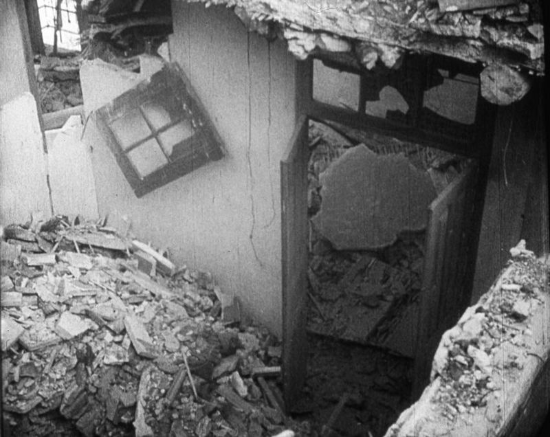 | Contenido: Título Noticia: Valle de Bielsa. El documental presenta imágenes de varios poblaciones en ruinas y de grupos de población civil, se distinguen claramente Bielsa, Escalona y tal vez Plan. En la locución habla del saqueo y destrucción de las tropas de la célebre división roja nº 43 en su huida a Francia durante la bolsa de Bielsa. |