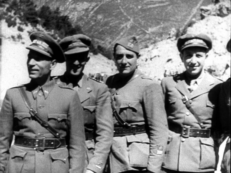 | Nota: Nº 847 (D9) del catálogo Filmoteca Española. Fotograma del documental nº 15 del DVD nº 2 que conserva el Museo de Bielsa. Una parte de estas imágenes se encuentran en el DVD nº 1 con el documental nº 5 como Noticia del Noticiario España al Día. Este bloque de imágenes tiene relación con la Noticia: Heroìs d’Espanya, la 43 división, imágenes 021-002-029 a 037. Título de la imagen asignado por el Museo de Bielsa. |