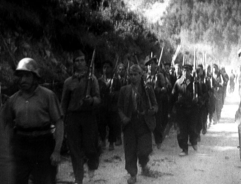 | Nota: Nº 847 (D9) del catálogo Filmoteca Española. Fotograma del documental nº 15 del DVD nº 2 que conserva el Museo de Bielsa. Una parte de estas imágenes se encuentran en el DVD nº 1 con el documental nº 5 como Noticia del Noticiario España al Día. Este bloque de imágenes tiene relación con la Noticia: Heroìs d’Espanya, la 43 división, imágenes 021-002-029 a 037. Título de la imagen asignado por el Museo de Bielsa. |