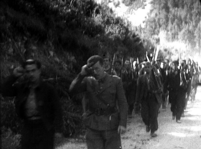 | Nota: Nº 847 (D9) del catálogo Filmoteca Española. Fotograma del documental nº 15 del DVD nº 2 que conserva el Museo de Bielsa. Una parte de estas imágenes se encuentran en el DVD nº 1 con el documental nº 5 como Noticia del Noticiario España al Día. Este bloque de imágenes tiene relación con la Noticia: Heroìs d’Espanya, la 43 división, imágenes 021-002-029 a 037. Título de la imagen asignado por el Museo de Bielsa. |