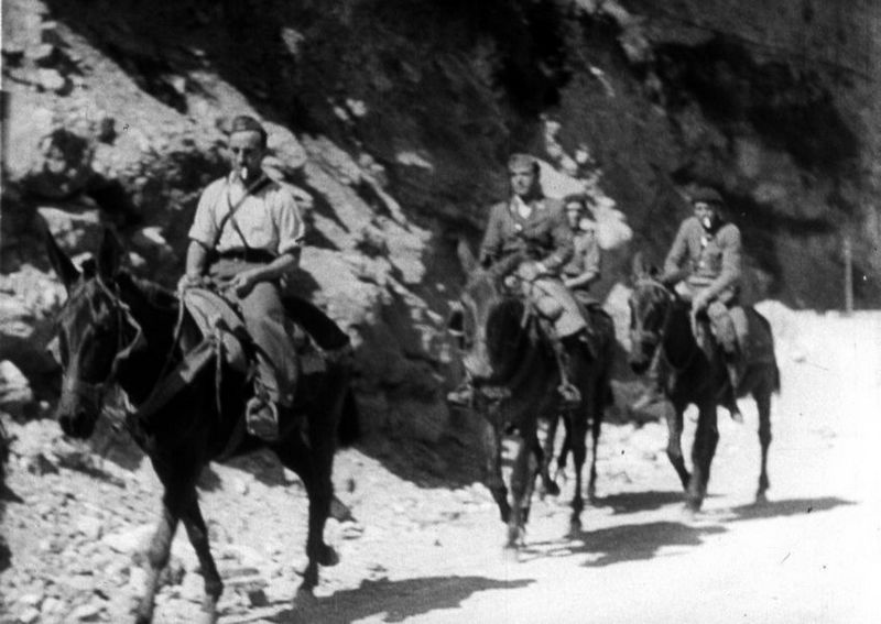 Contenido: Imagen del documento de la serie Vascongadas referente a la visita de Manuel Irujo, ministro de la república, a la 43 división. Partiendo desde Fabian en Francia, pasa al valle de Bielsa por el puerto, para encontrarse con Antonio Beltrán y el resto de oficiales de la división en Bielsa. Soldados de la división desfilan ante Manuel Irujo y los oficiales. Encuentro con veteranos y soldados en la plaza de Bielsa frente al Ayuntamiento. En esta imagen la comitiva de caballerías y hombres que acompaña a Manuel Irujo. Según GASCÓN RICAO, Antonio. La Bolsa de Bielsa: el heroico final de la república en Aragón, Huesca, DPH y Museo de Bielsa, 2005, la visita de Manuel Irujo a la bolsa de Bielsa se produjo el 6 de junio de 1938. |