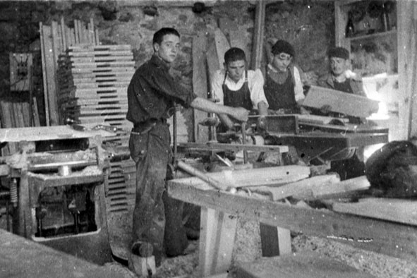| Contenido: De izquierda a derecha: Antonio Martínez Casasnovas, de casa Arturo, Antonio Berastegui Solans, de casa Serafina, José María Rosillo (identificación dudosa), Luis Escalona Vidallé, de casa Manoleta. |