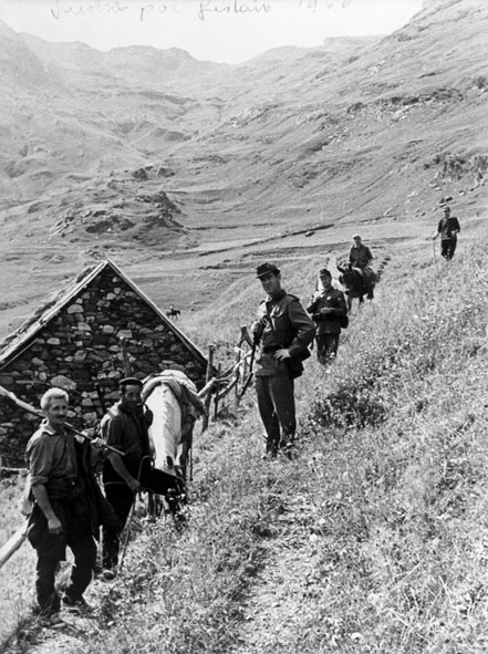 | Contenido: Escrito a mano, en la parte superior: "Suelza por Gistaín, 1968". En el momento de hacersse la identificación y documentación de la fotografía se anotó "Subiendo a Ruego, en Angorres". Entre las personas que aparecen se encuentra José Méliz Méliz. |
