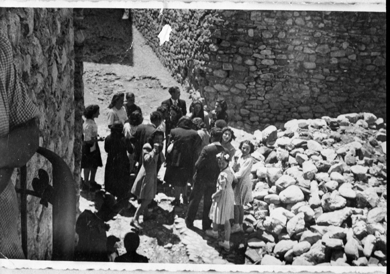 | Contenido: Foto tomada durante las fiestas de la Virgen de Agosto. Entre los que aparecen se ha identificado a Ester y Carmen Noguero, de casa Pichón. |
