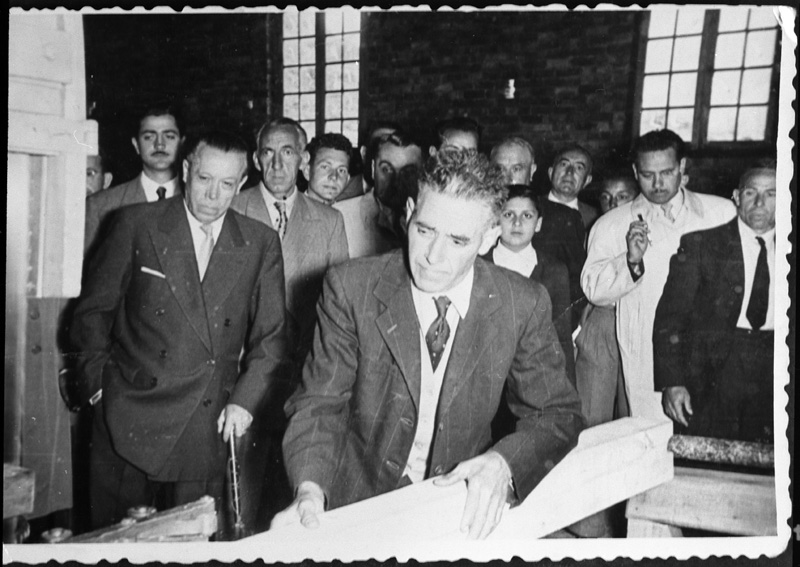 Esta fotografía forma parte del reportaje realizado por Antonio Uriarte con motivo de la inauguración de la serrería. Se encuentra entre el conjunto de fotos aportadas por los vecinos por tratarse de una copia propiedad de un particular. |