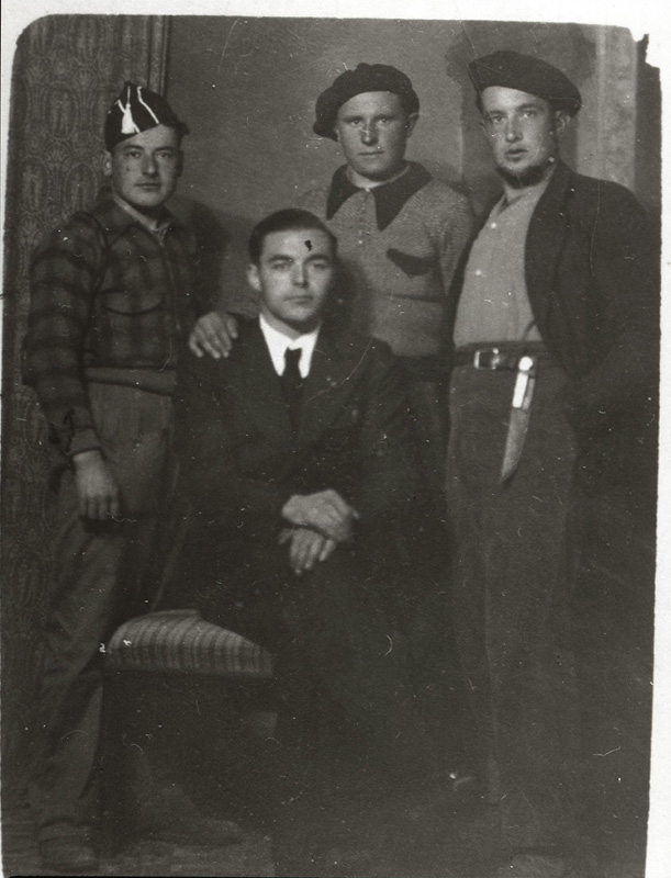 | Contenido: De izquierda a derecha: Antonio Irigoyen Bernad, de casa Tozalo, Félix Solans, de casa Bandoma de Parzán, Luis Escalona Vidallé, de casa Manoleta; y sentado, Pedro Solans de Antonio, de casa Baticer. |
