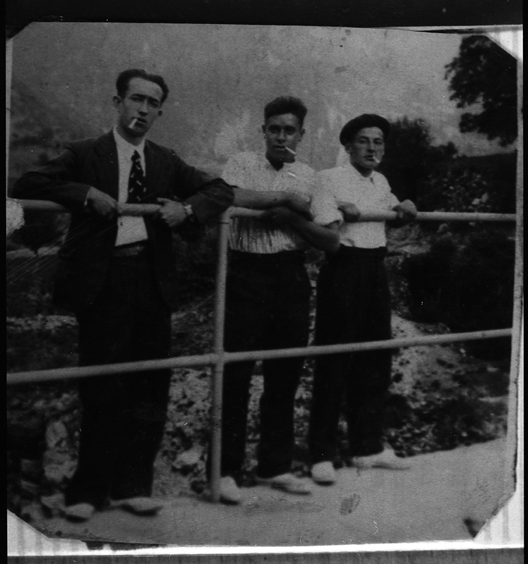 | Contenido: De izquierda a derecha: Antonio Costa Aventín, de casa Campé, Antonio Escalona Noguero, de casa Campo, y Antonio Irigoyen Bernad, de casa Tozalo. |