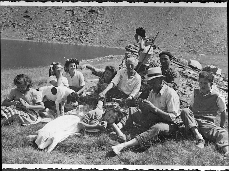 | Contenido: Los componentes del grupo excursionista son el policia Mariano Lamula, Pilar Méliz Méliz, Mª Jesús Vidallé Barranco (cortando sopas en la esquina izquierda de la foto), Anita Guerrero, de Aínsa, Raquel Sanz, Fumanal, Fernando Méliz de Antonio y un excursionista de Zaragoza. Durante la excursión a Urdiceto el grupo se encontró con los maquis. |