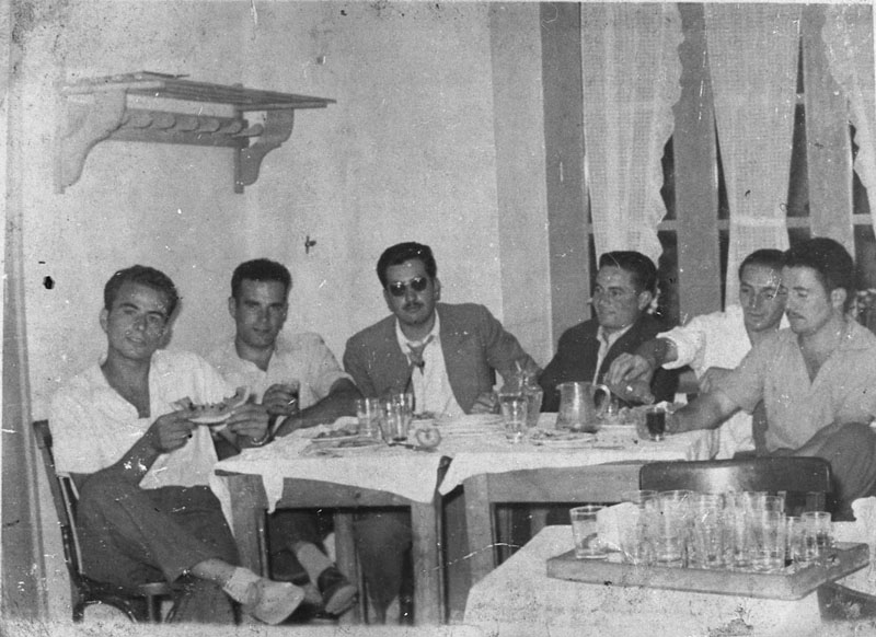 | Contenido: De izquierda a derecha: Alberto, Perico, de casa Pichón, Ildefonso el guardia, Pochas, Baticer y Pepe Luis Barranco vidallé, de casa Judías. |