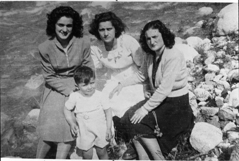 | Contenido: De izquierda a derecha, María Teresa Méliz Solans, de casa Judas, Pilar Pañart de Antonio, de casa Alonso, Alicia Méliz Solans, de casa Judas, y el niño Roque Gistau Bernad, de casa Justa. |
